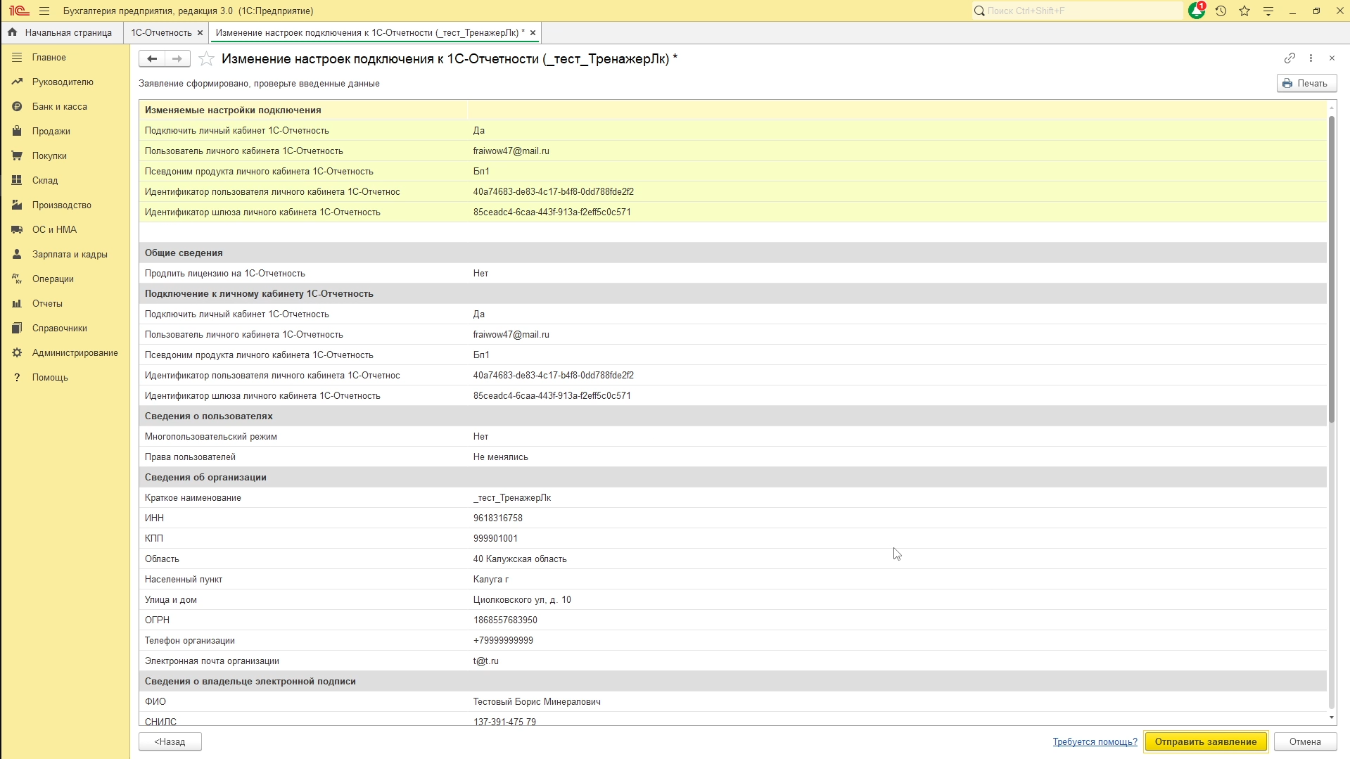 Нажмите «Отправить заявление»