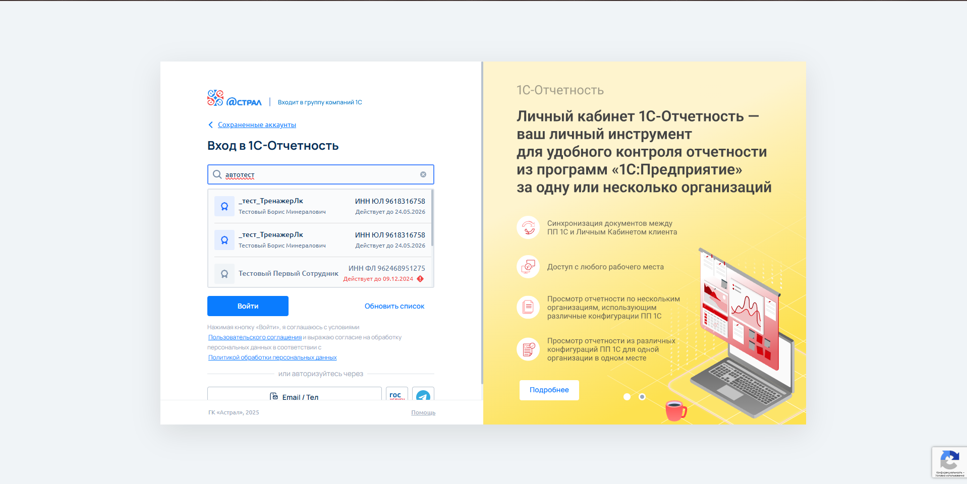 Выбираем «Сертификат» и нажимаем кнопку «Войти»